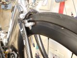 リム幅25mm。以前の物より2mm広いですが、あのGP5000がなんとタイヤレバーを使わず手で装着できた!今時のタイヤに対応できるようにリム内部の真ん中がすこし深いのかもしれない
