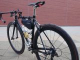クッション性はクロモリとの相性も良く、またタイヤもすこし太いので良い感じではありますが、とにかく座面の形状がレザーとは違ってお尻の形に添わない事が原因。