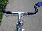 一番お気に入りのハンドルバー(パナチに付けているZIPPのドロップ)にも同じくらいのスイープ角が付いていますが、上ハン自体は水平なので握りやすく感じます。